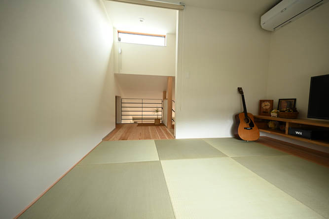 階段を上がった先にある和室。趣味のギターなどはこちらで落ち着いて弾くことが可能