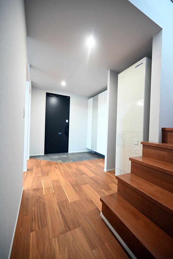 玄関を入ると2階LDKへつながる階段が見える。吹き抜けになっており空間が広く感じます