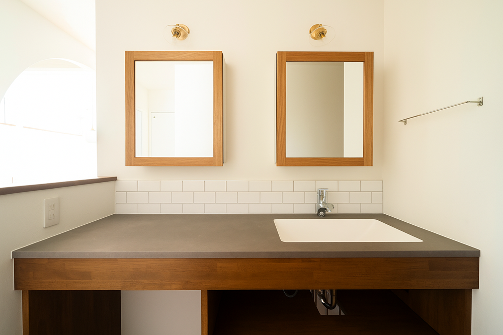住む人の思いをかたちにしたオリジナル造作洗面化粧台など。