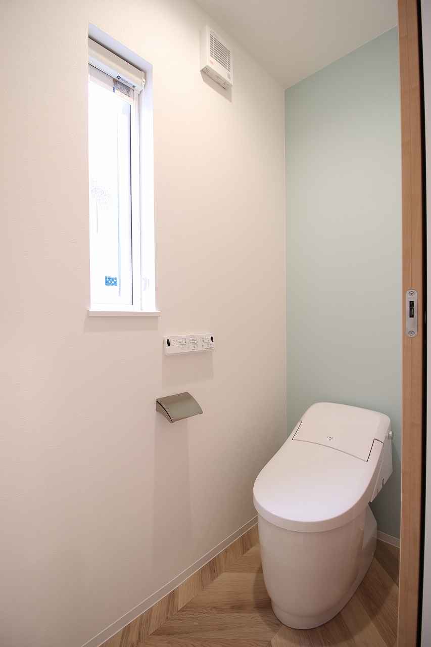 収納力のある洗面台や、壁紙にこだわったトイレなど、 随所にお施主様の想いが感じられる、 シンプルで心地よい住まいです。