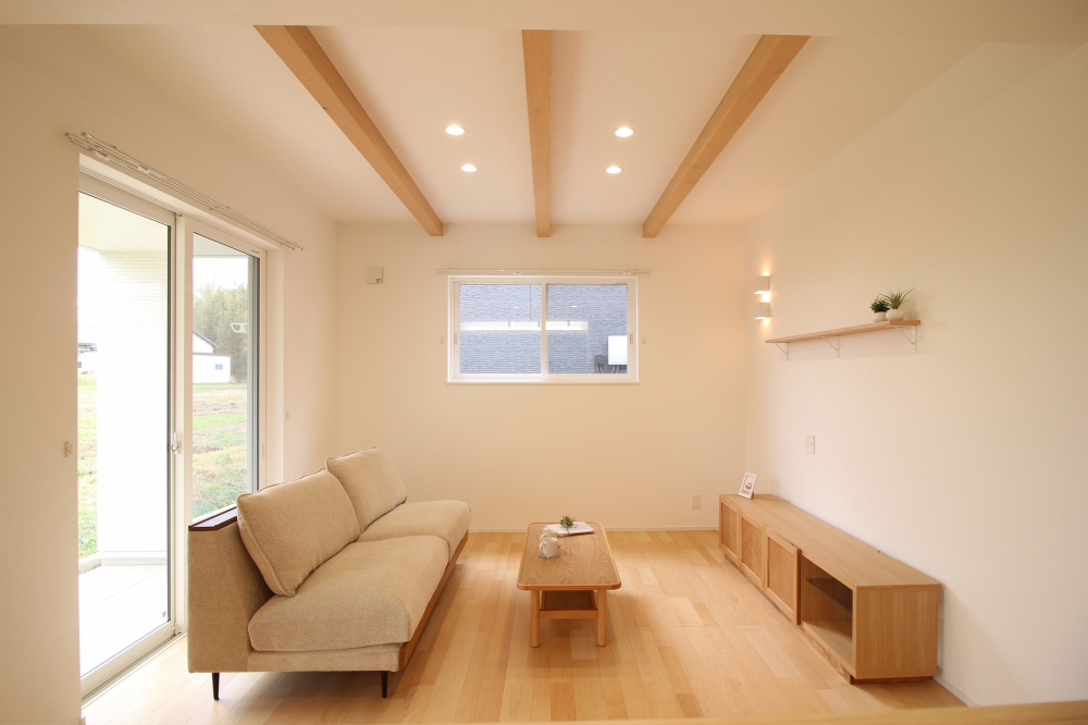 折り上げ天井×化粧梁で、開放感とおしゃれさをプラスしたリビング。