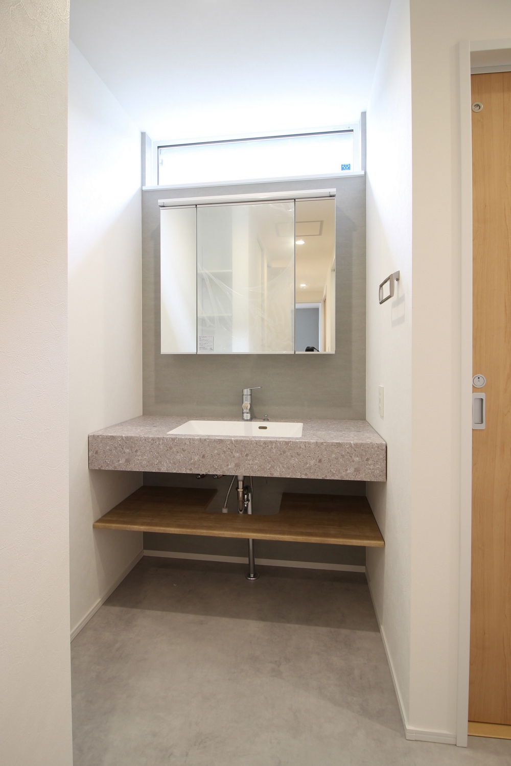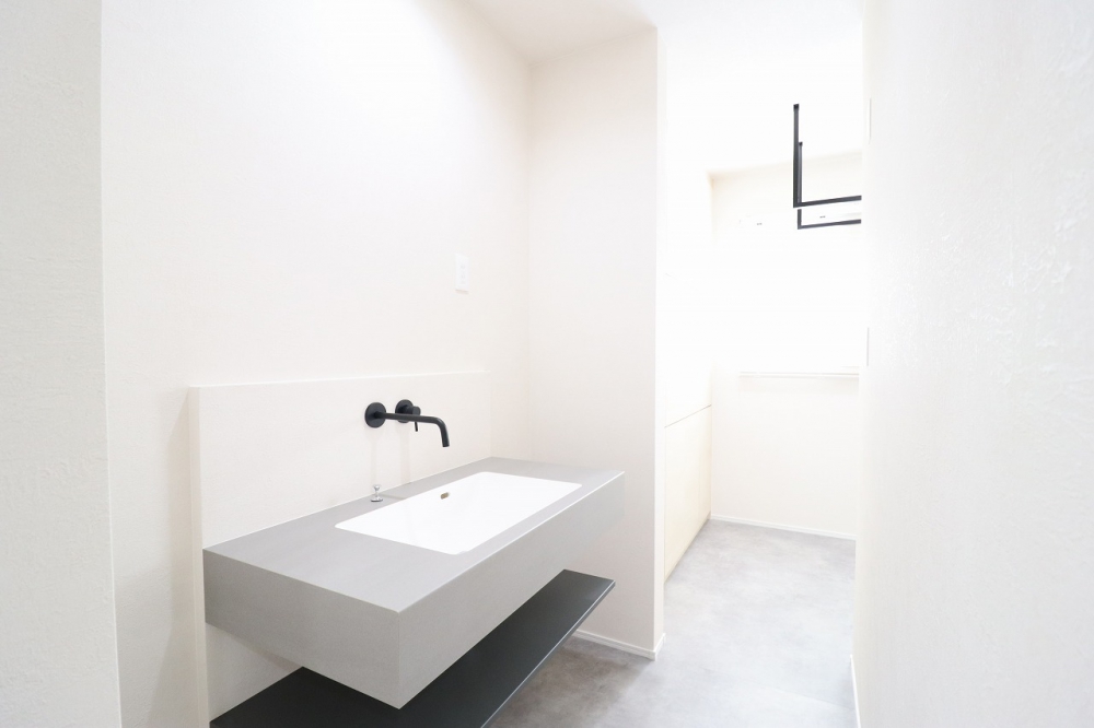 造作風デザインがおしゃれな洗面台。身支度が楽しくなる空間です。