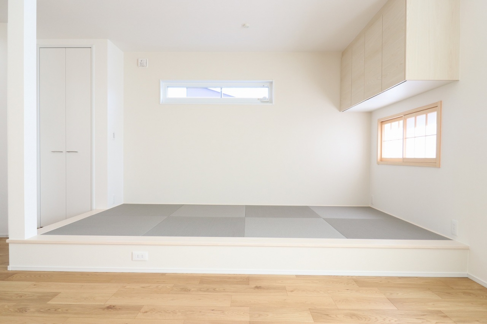 リビングに隣接した畳コーナーは、お子さまのお昼寝やちょっとした趣味スペースとして活躍します。 将来的には寝室としても使いやすく、ライフスタイルに合わせて柔軟に使える空間です。