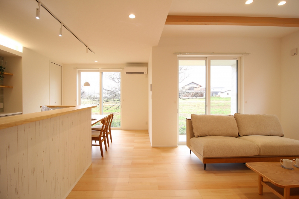 リビングには大きな掃き出し窓を設け、LDKが明るい空間になるようにしました。