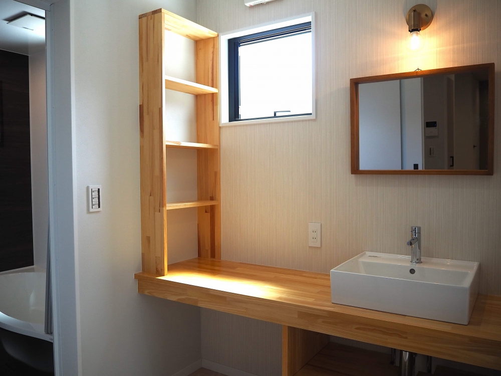 大きなファミリークロークや共有のカウンター型洗面台など空間を合理的に活用する間取りをお施主様と一緒に考えました。