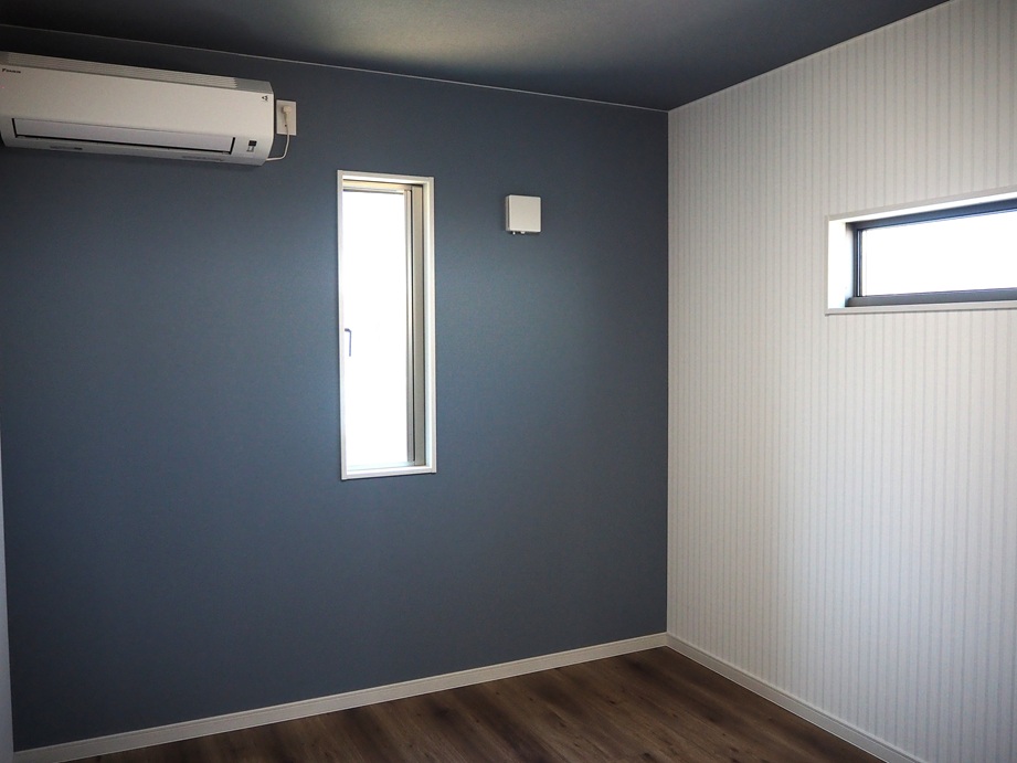 かわいいリモコンニッチや家族用のファミリークローク、子供部屋には好きな色のアクセントクロスを採用しました。