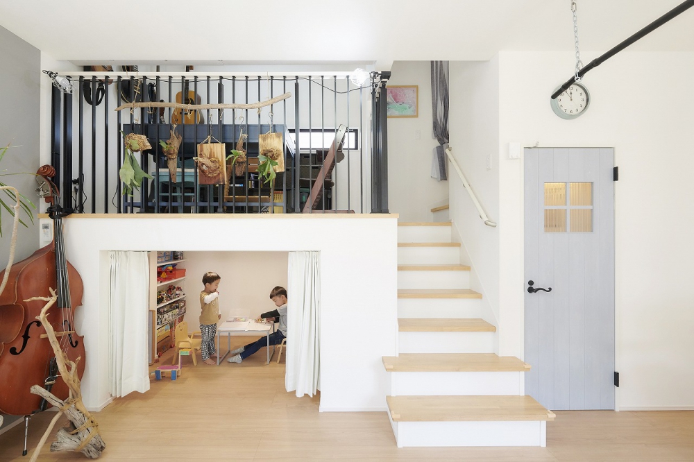 ただし家すべてではなく、子供部屋やプライベート空間の多くなる2階はガラッと変えて洋風なテーマにしています。