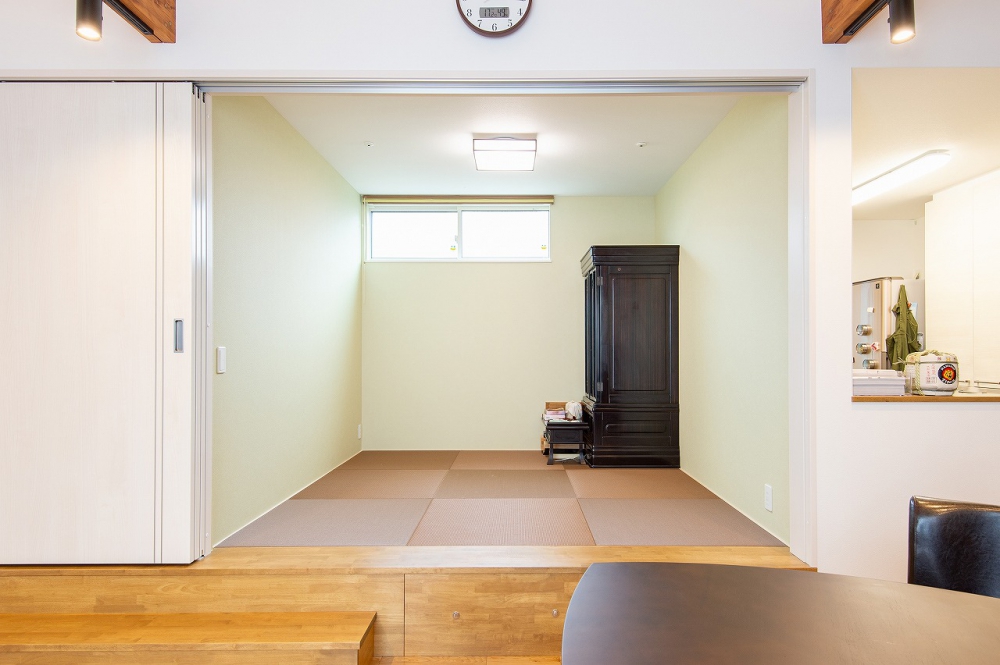 畳屋なので畳にはこだわりましたし、キッチンからリビング全体が見渡せるようにしてもらえたのも嬉しいです。