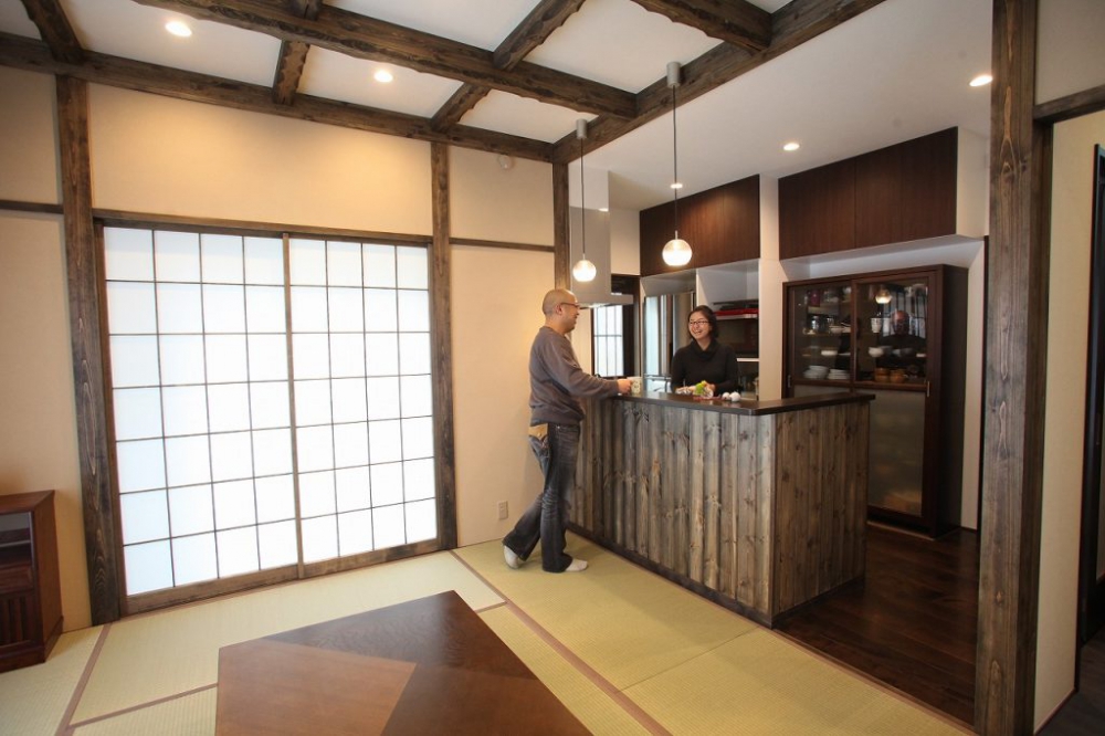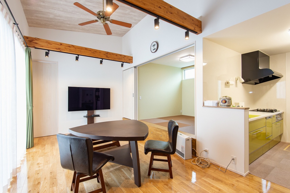 畳屋なので畳にはこだわりましたし、キッチンからリビング全体が見渡せるようにしてもらえたのも嬉しいです。