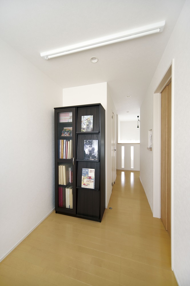 2階のホールは洗濯物を干すスペースに充てられている。「仕事に出ている時に雨が降っても心配ないうえ、花粉もつきにくい。冬の洗濯物干しも寒くないし、快適ですよ」。風の流れ方まで計算されており、家の中でもカラッと乾く