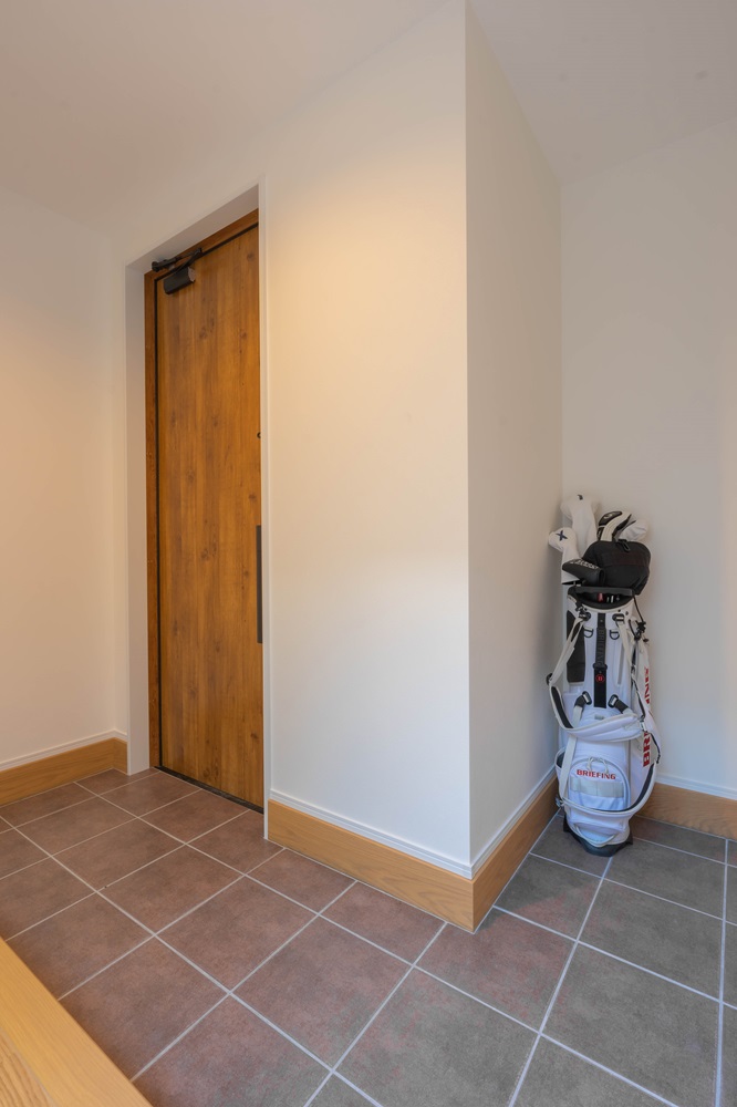 土間の広さもしっかり確保して、アウトドアグッズなども余裕の収納量