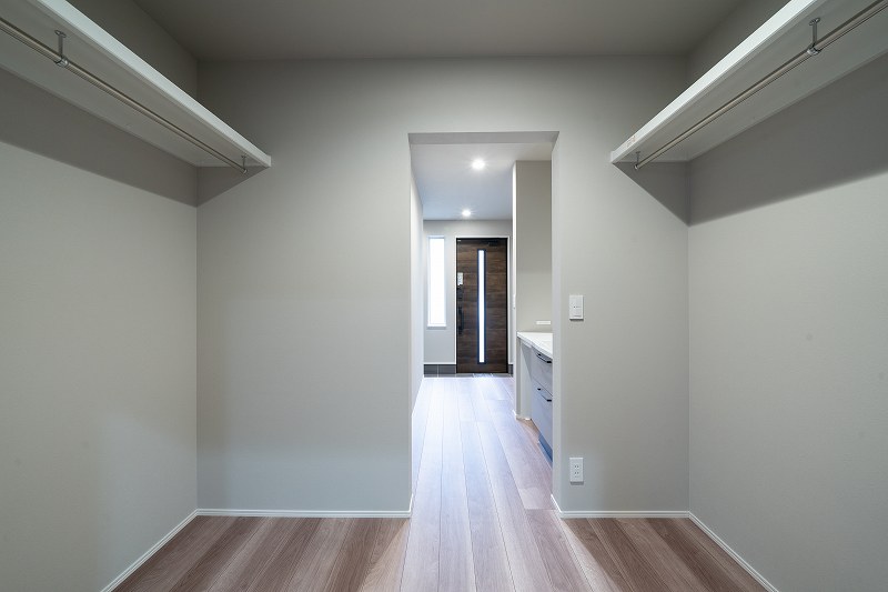 たっぷり収納が叶うウォークインクローゼット。 3か所にハンガーパイプを設けているため、季節ごとの衣替えもスムーズに行うことができます。