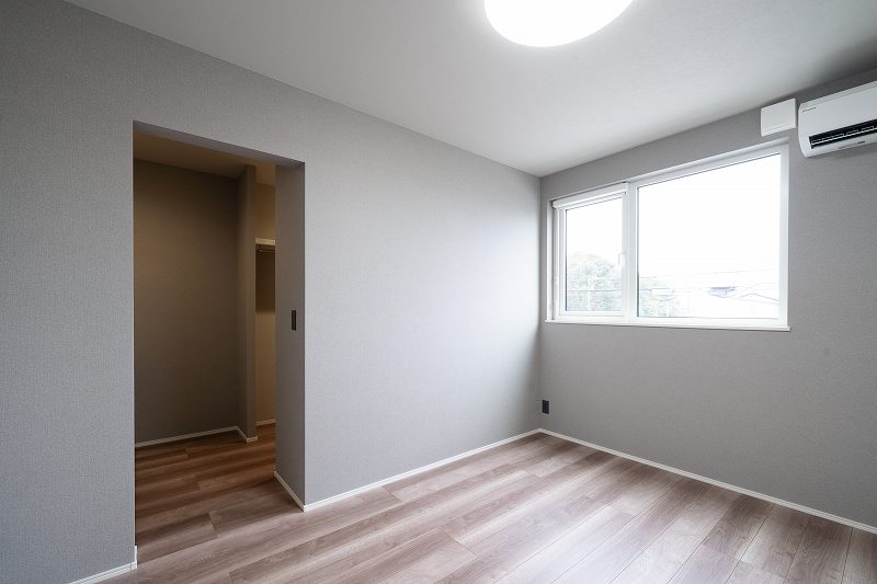 お子様の成長や家族の変化に合わせて、間仕切りで部屋を増やすことのできる子供部屋。 そのため、収納と扉は左右対称に備えています。