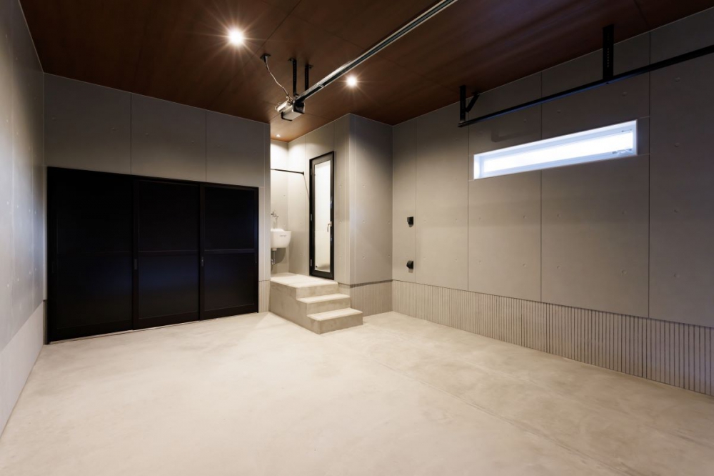 ガレージ内には便利な洗い場を設け、汚れを気にせず作業したり帰宅後すぐに手を洗ったりと、外と中をスムーズにつなぐ工夫を凝らしました。 決まったカタチではなく、そこに住まう方のこだわりを詰め込めるのが自由設計の魅力です。