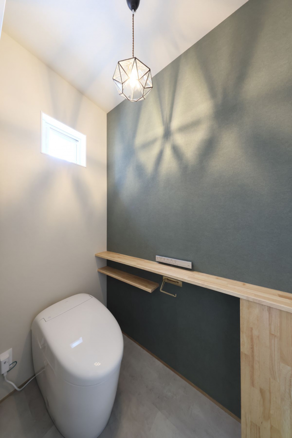 アクセントウォールを使用し、和の雰囲気を出したトイレに仕上がっています。