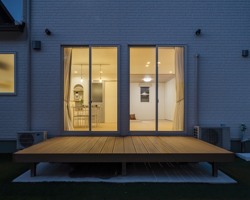 室内と外をゆるやかにつなぐ、心地よいウッドデッキ。 陽だまりの中でくつろいだり、家族で過ごすひとときが自然と増えていきます。 毎日の暮らしに、ちょっとした特別をプラスしてくれる場所です。