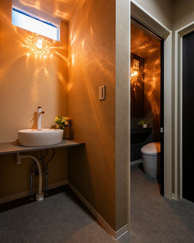 サロン側のトイレスペース。高級感のある仕上りでサロンスペースと統一感のある空間となっています。