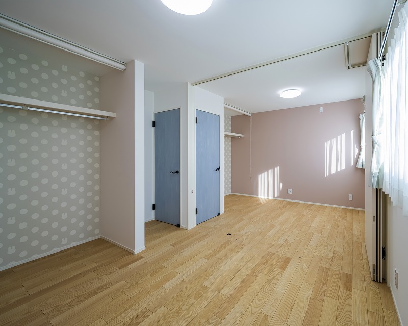 収納もしっかり出来る子ども部屋! 遊びスペースにも、勉強にもピッタリな明るく快適なお部屋です。将来を見据えた可動式間仕切を採用。