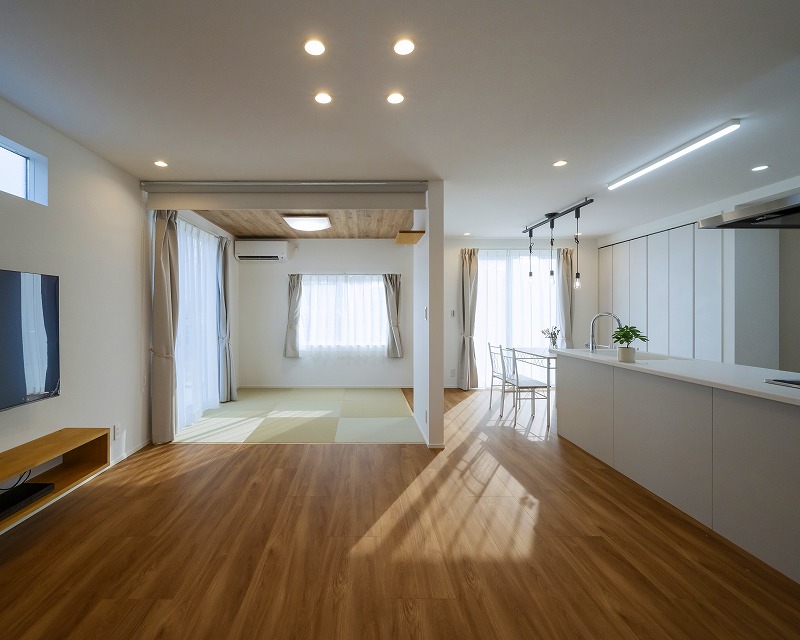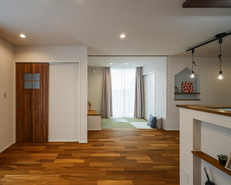 4.5帖の和室が隣接したリビングは、落ち着きと癒しを感じさせる空間です。 和と洋のスタイルが調和した、心地よいくつろぎ空間になりました。