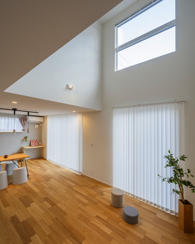 高窓からたっぷりと自然光が差し込み、空間全体をやわらかく包み込みます。