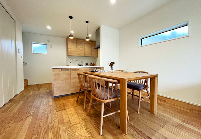 リビング・ダイニングに大きな開口部をたっぷり設けた、2階とつながる開放的なLDK。