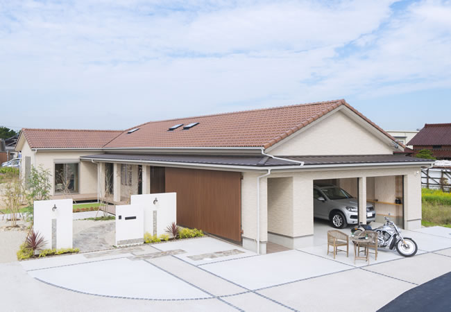 完成したお家を一言で表すと 「愛車をいつでも眺められるビルトインガレージのある家」