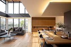 ご夫婦揃っての希望は、「家族の団欒を大切にできる住まい」。広々としたリビングに家族が集まり、楽しい団欒のひと時を楽しめる空間をカタチに