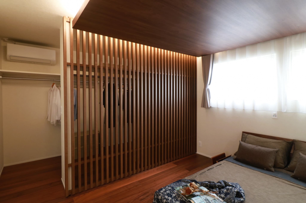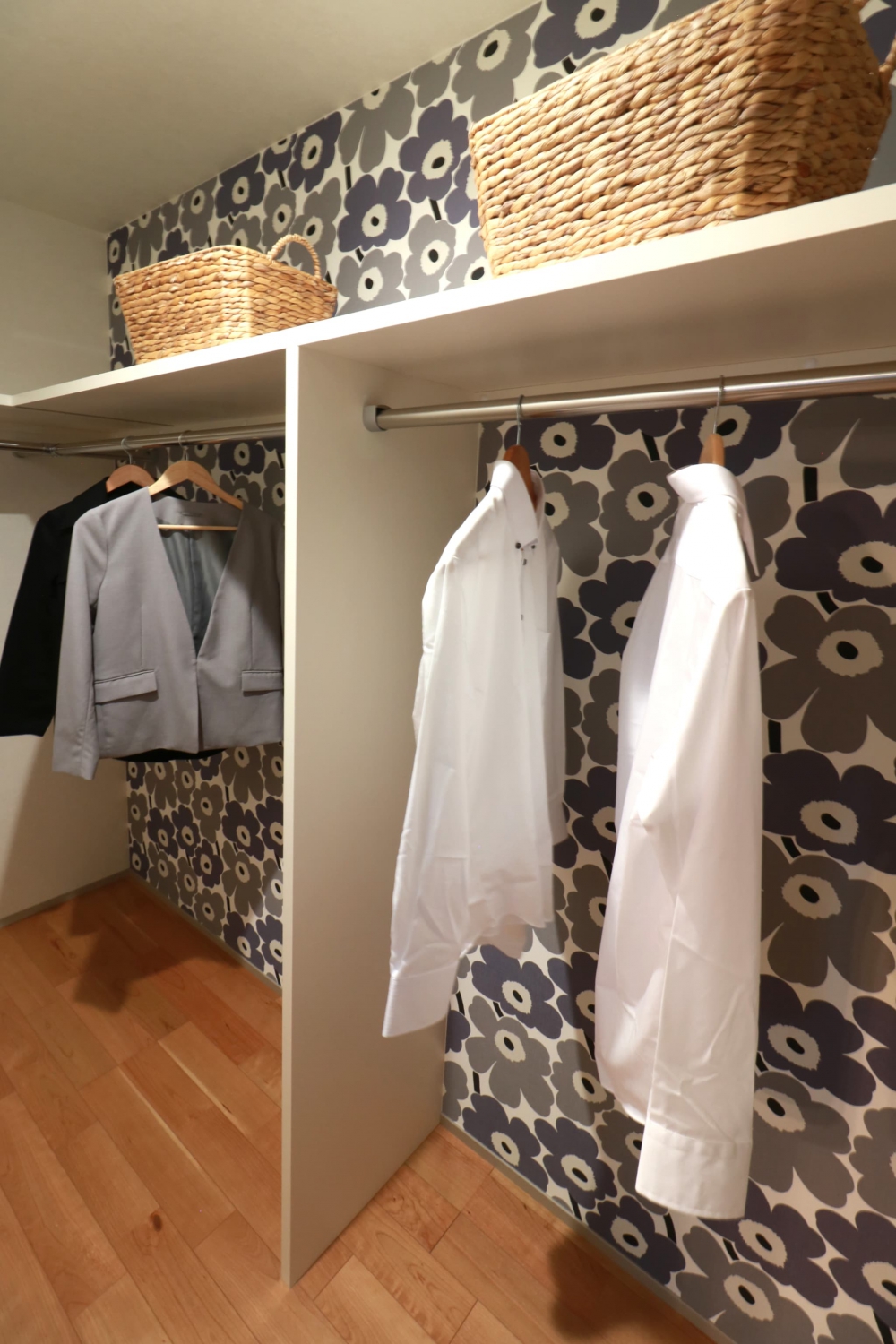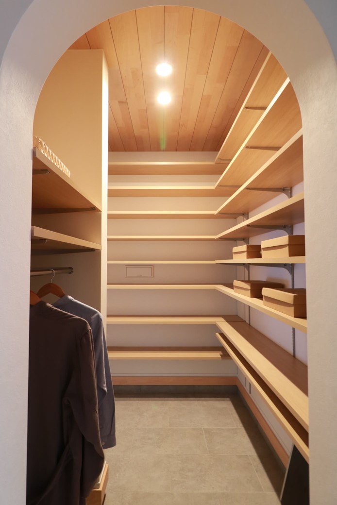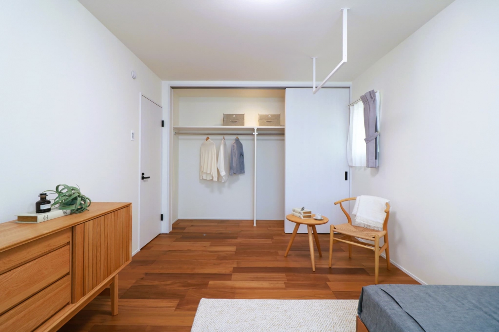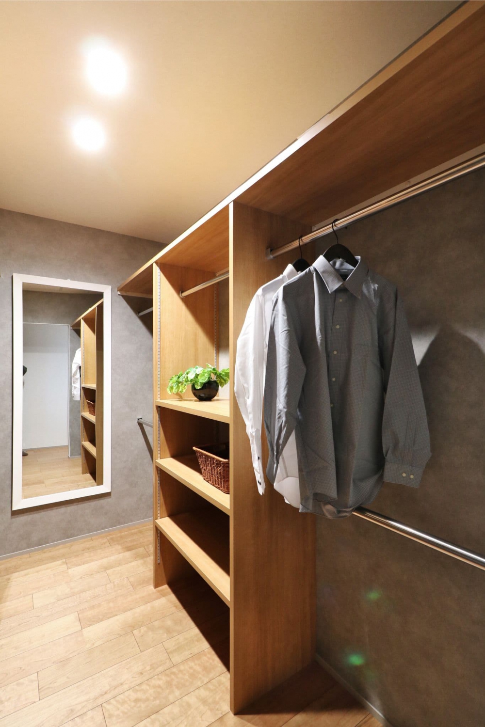 玄関横のクロークは効率的な収納と動線を両立し、寝室併設のウォークインクローゼットは