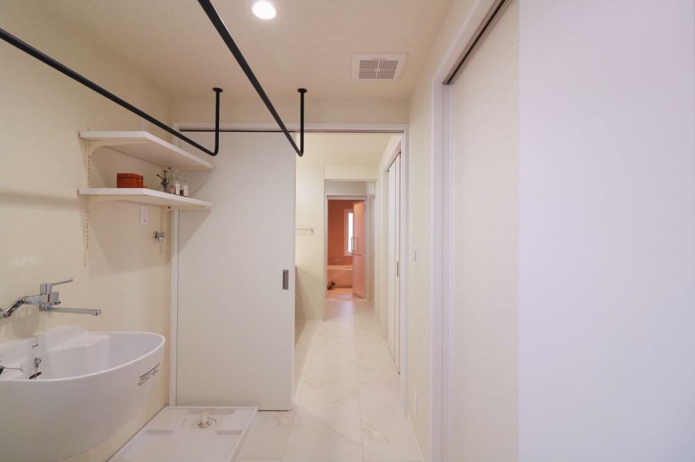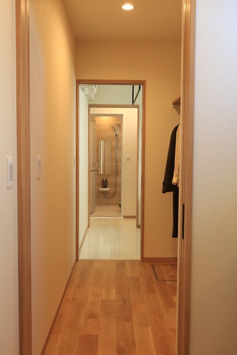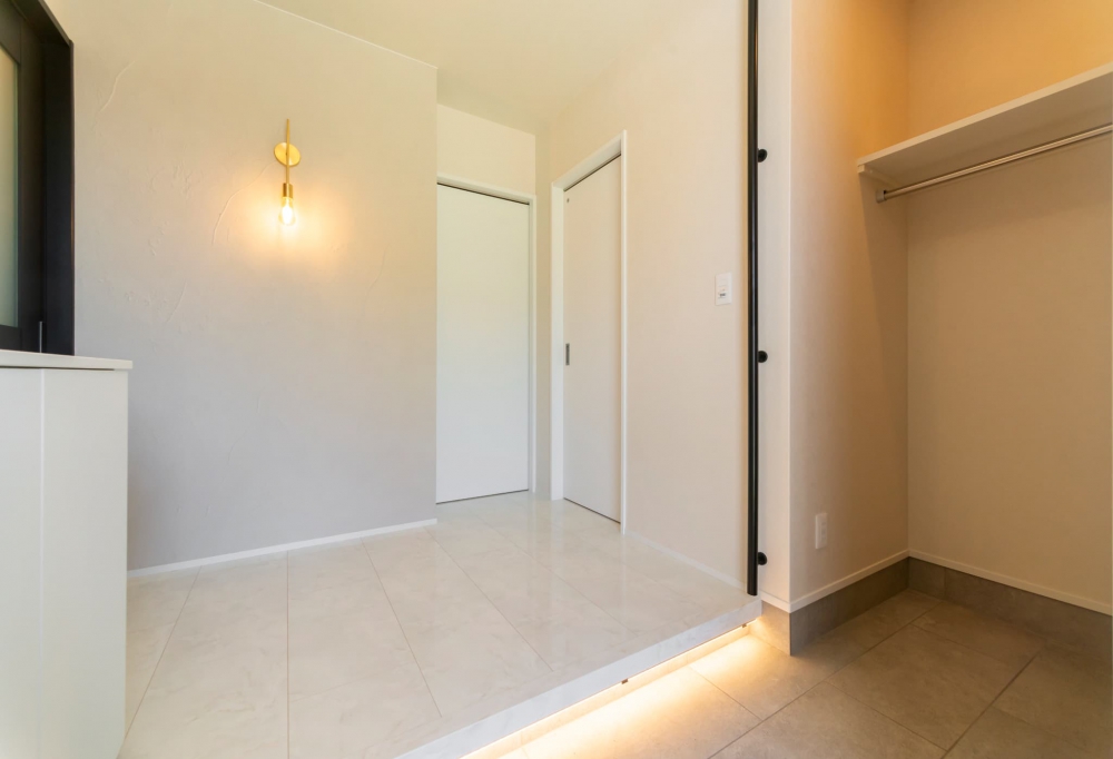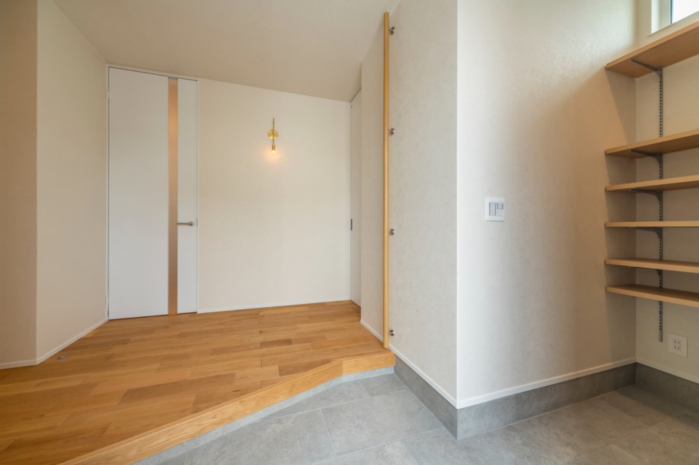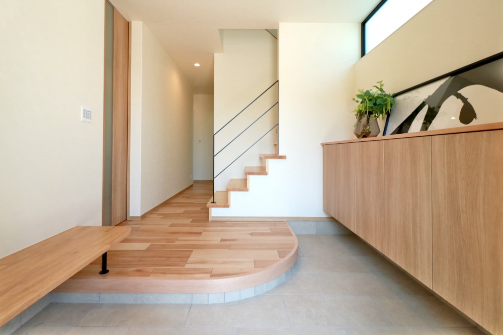 玄関からリビング・水廻りスペースへのスムーズなアクセスを確保し、家事やくつろぎの時間をより快適にしました。