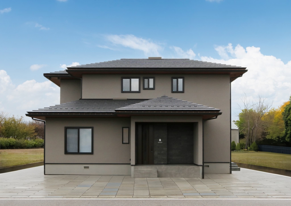 重厚感を感じさせる端正な佇まいの邸宅です。高品質な素材が、その風格を高めています。