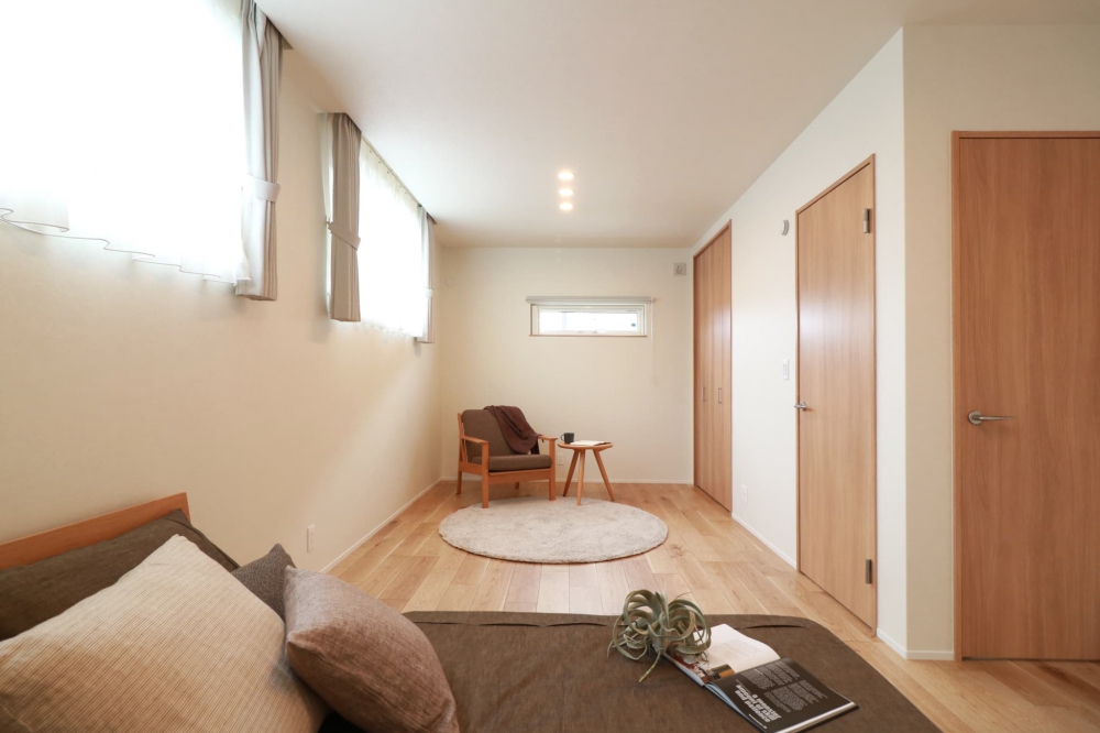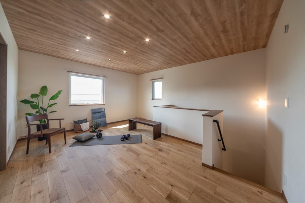 自然光が差し込むフリースペースは趣味やリラックスに最適で、一体感のある住まいです。