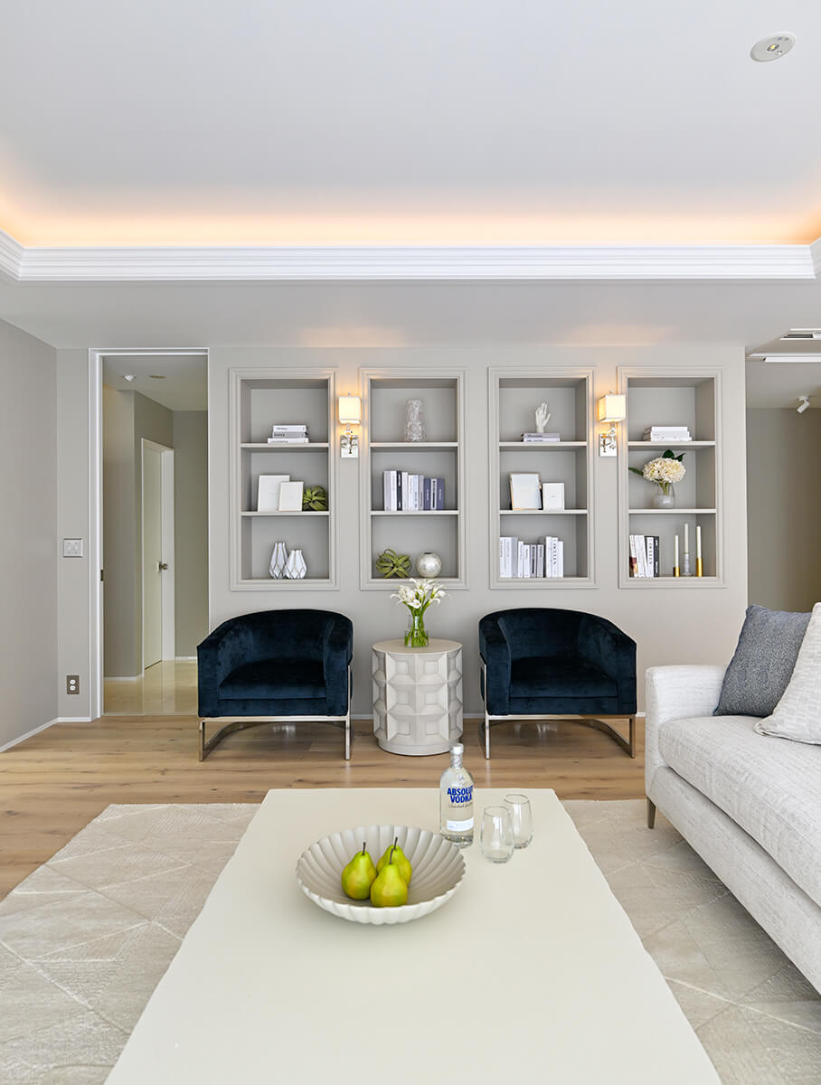 白とグレージュの色合いに統一された空間は、ナチュラルで上品な雰囲気。