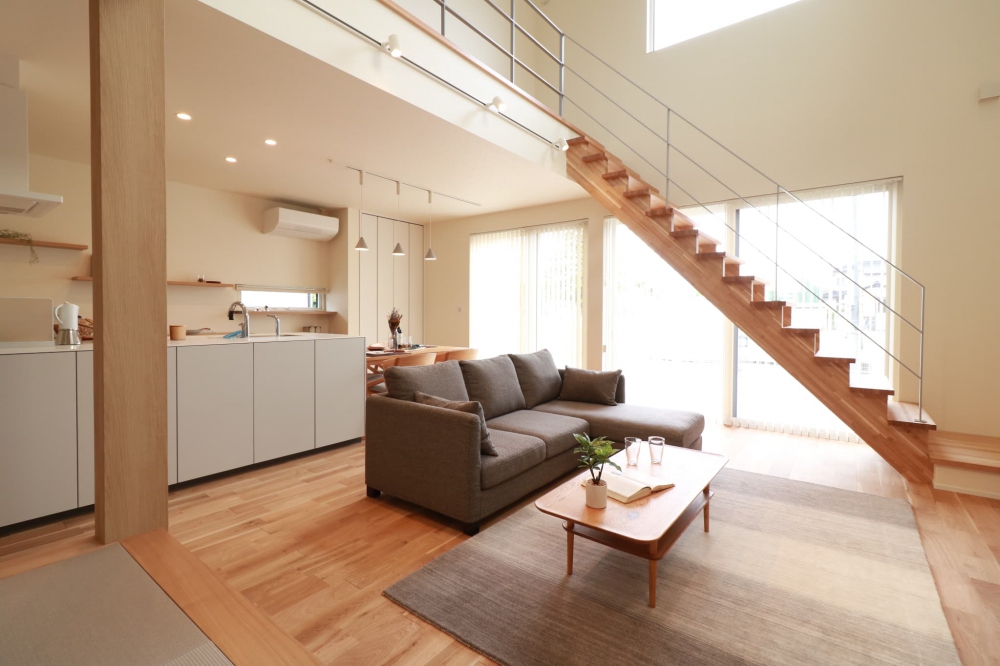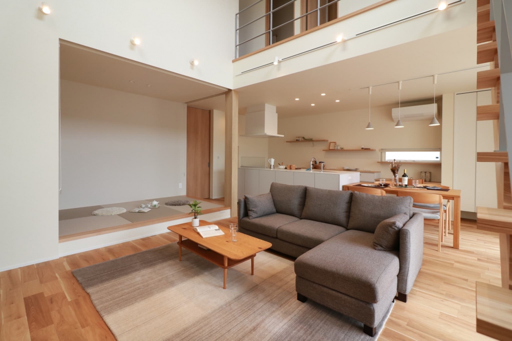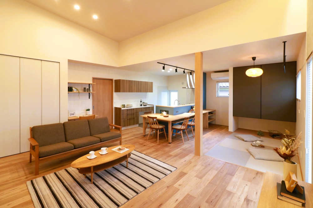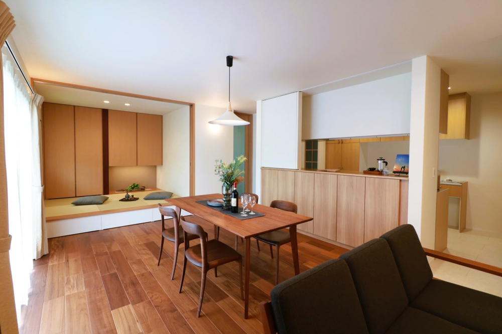 広々としたリビング・ダイニング・キッチンに隣接する畳コーナーが、家族の団らんとリラックス空間を演出。