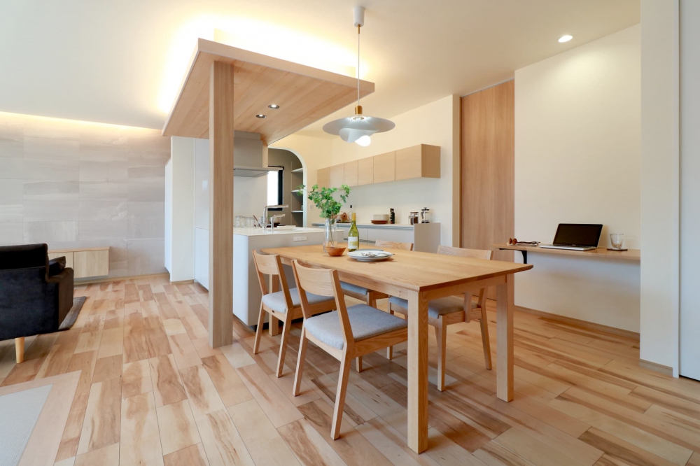和と洋を融合したモダンスタイルで、木目の美しいナチュラル素材を基調としています。