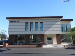 店舗部分は漆喰壁とタイルのアクセントが調和し、訪れる人をやさしく迎える空間になっています。