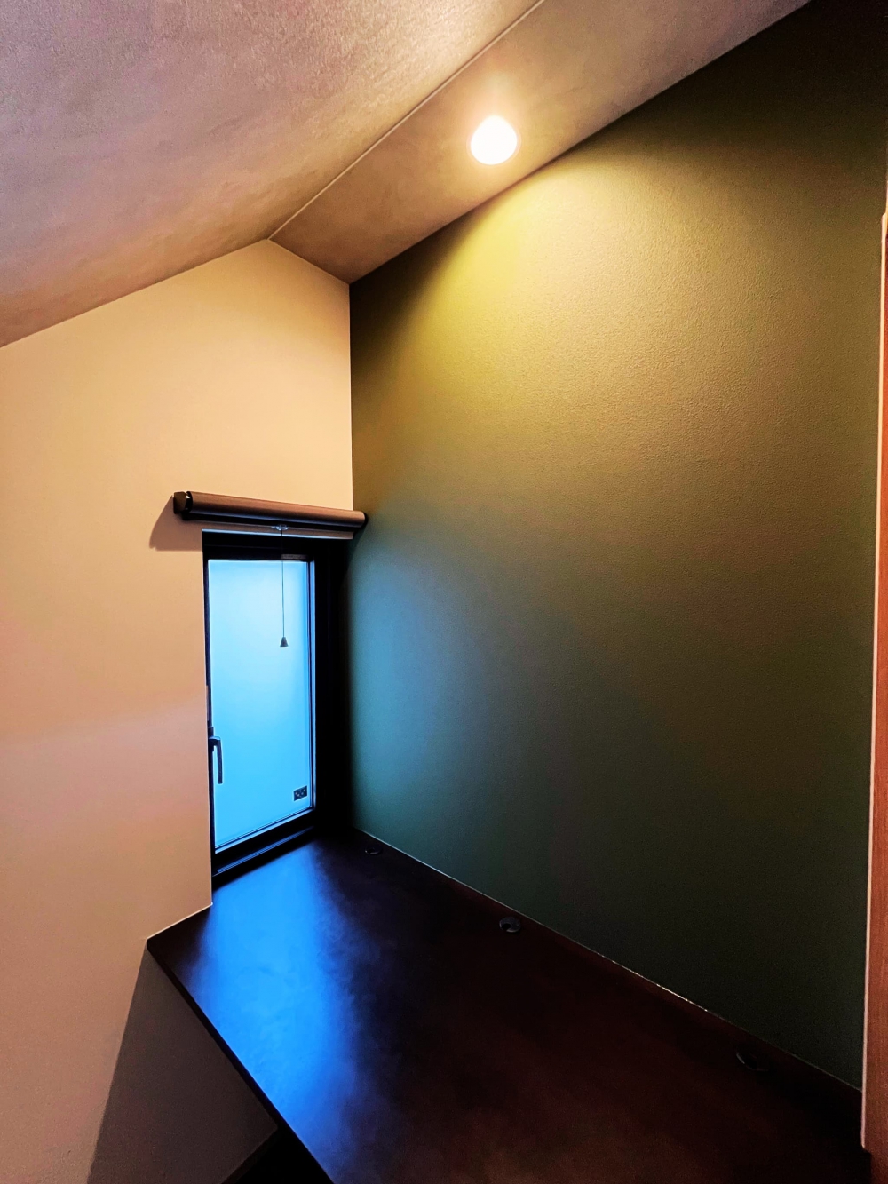 2階には広々とした寝室と二つの子供部屋があり、書斎は木の温もりとネイビーが織りなす上品で穏やかな空間です。