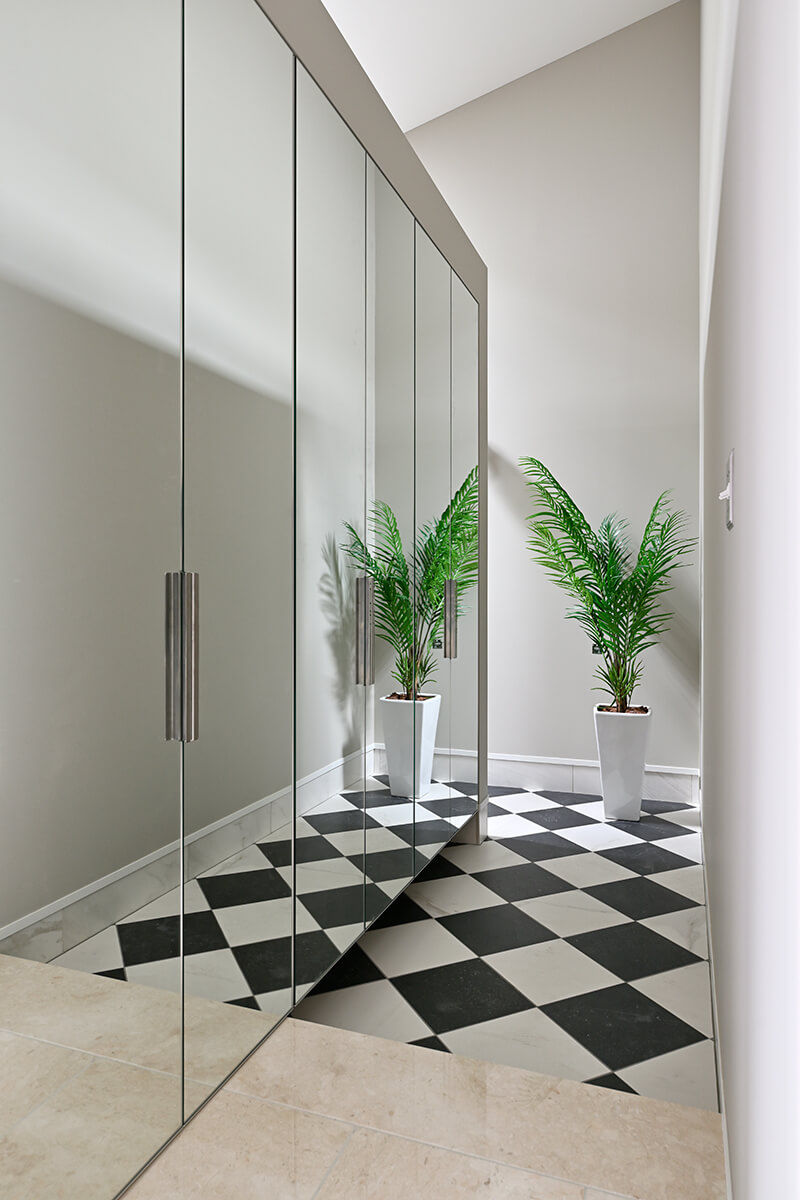 玄関に入ると、流水を描いた水墨画のようなウォークインクローゼットが目を引きます。