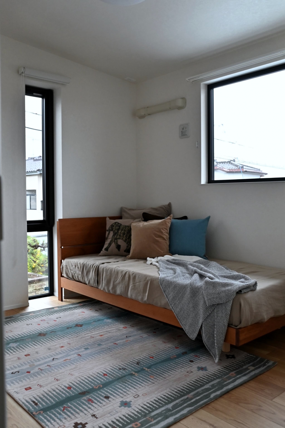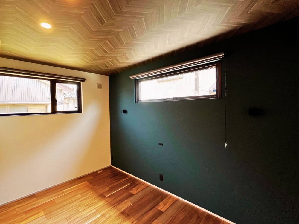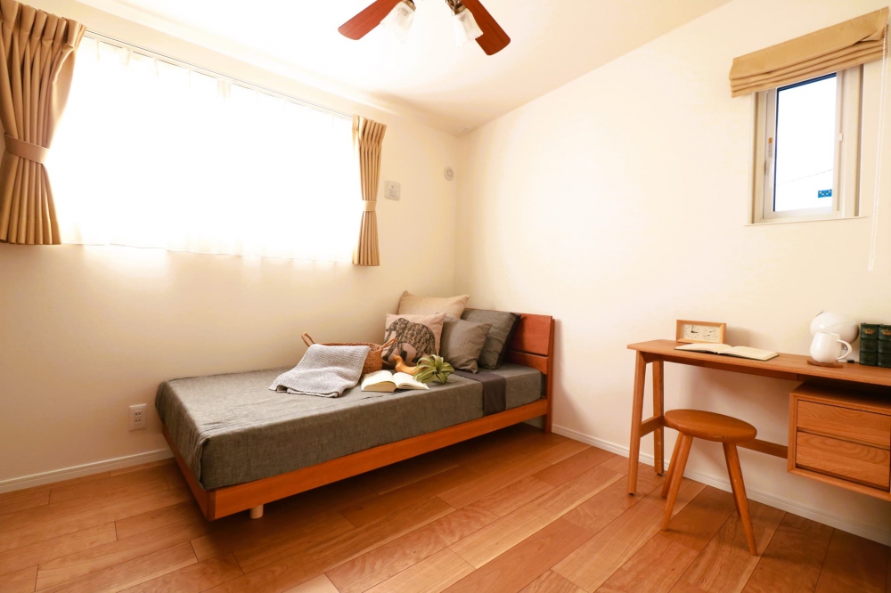 2階には明るい子供部屋と広い納戸を設置し、家族の成長に対応可能な設計です。