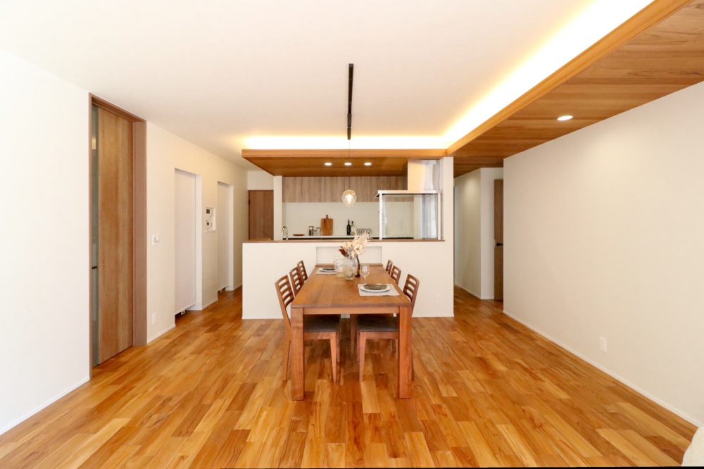 約33帖の大空間LDKが印象的な、開放感と木の温もりに満ちた住まい。