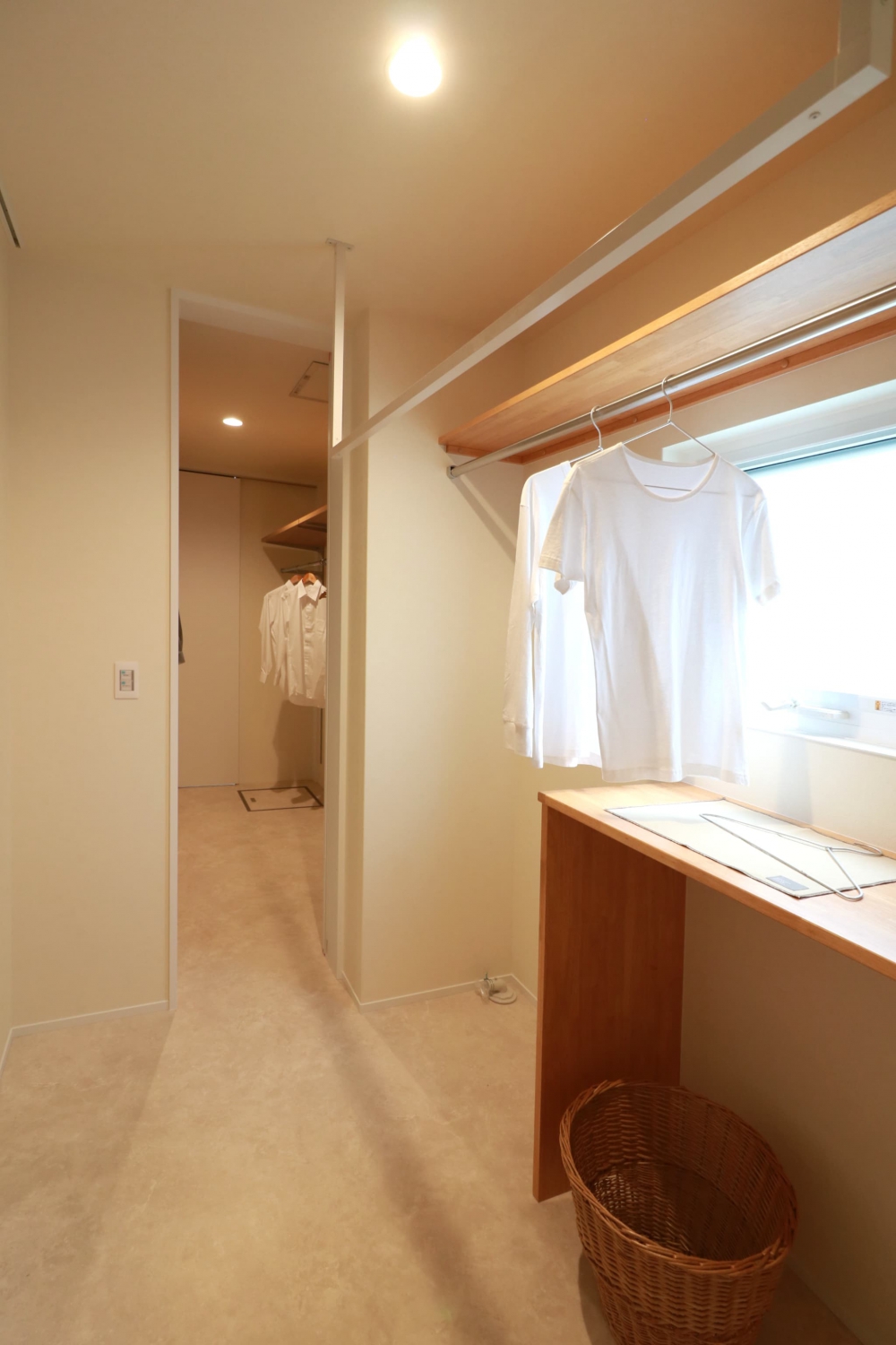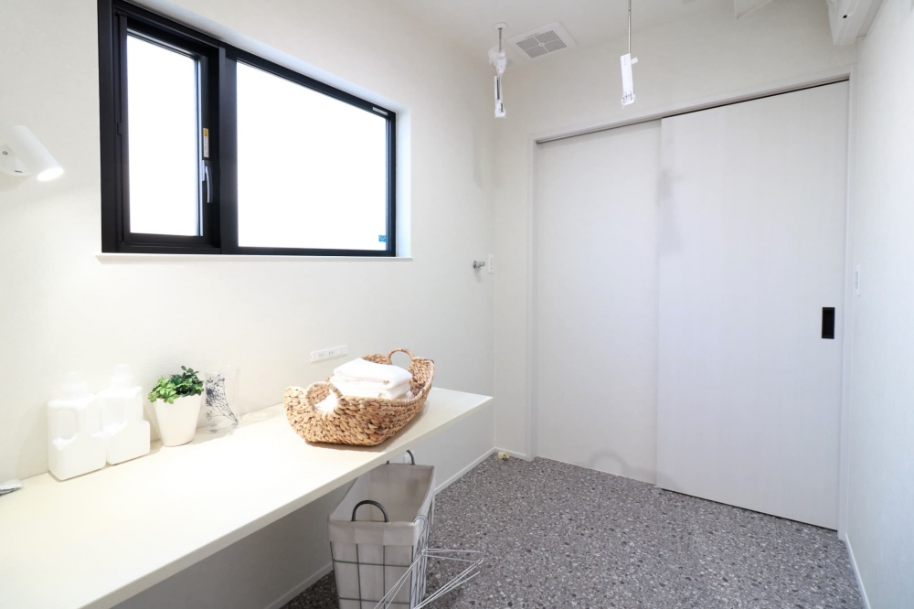 玄関から直行できる洗面室やファミリークローゼットなど、家事動線も工夫されています。