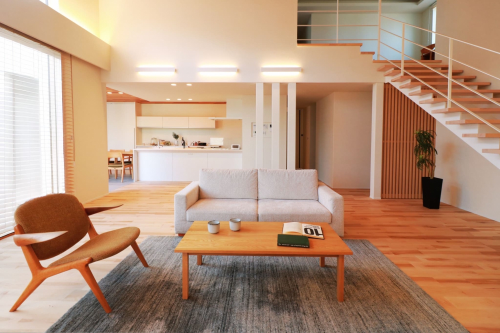 周囲の景色を暮らしに取り込む設計で、家族が心地よく過ごせる空間をつくりました。