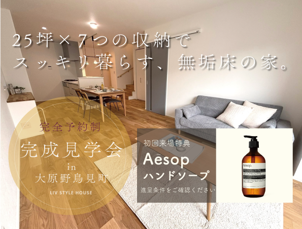 こだわりポイント | ①家族らしさと使いやすさを仕上げるプロセスを、家族の専属コーディネーターがサポート 間取りが完成したら、リヴスタイルハウスの家づくりの大きな魅力のひとつであるコーディネートを。外観の色や仕上げ、壁紙・フローリング・建具はもちろん、収納棚やカウンターなど大工さんの造作でつくりあげることも可能です。コーディネートに悩んでも、Instagramや雑誌などでお気に入りの空間を教えていただければ、専属コーディネーターがプロの目線で提案いたします。 ②建物価格は地元ならではの適正価格でいいものを 坪単価はお家のご要望によって変わりますが約坪80万~坪100万のお家が大多数を占めております。 また地元工務店だからこそ、地元に根付いたイベントやリヴグループの多角化事業の展開から、 名前を知っていただき、有難いことに約半数がご紹介でご成約を頂いております。 ③土地から探せる工務店 地元の企業だからこそ、まだ世に出ていない土地情報も保有しております。 またリヴ不動産販売という仲介・売買というグループ会社とともに、土地のプロ×建物のプロから土地を見ることでお客様の理想とされる建物を叶える・ご予算に合う土地をご紹介することが可能です。 |