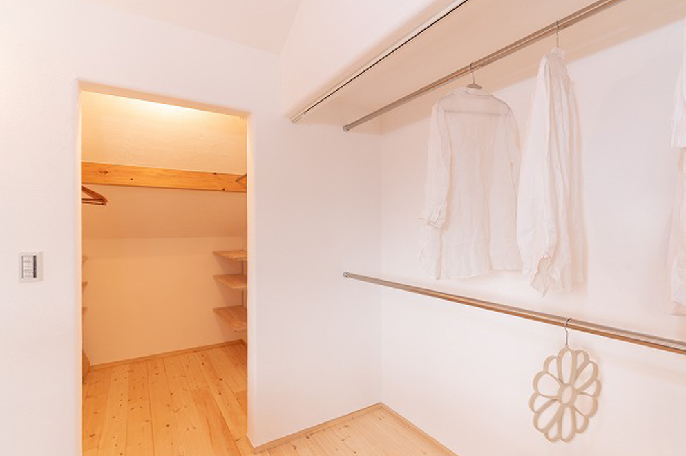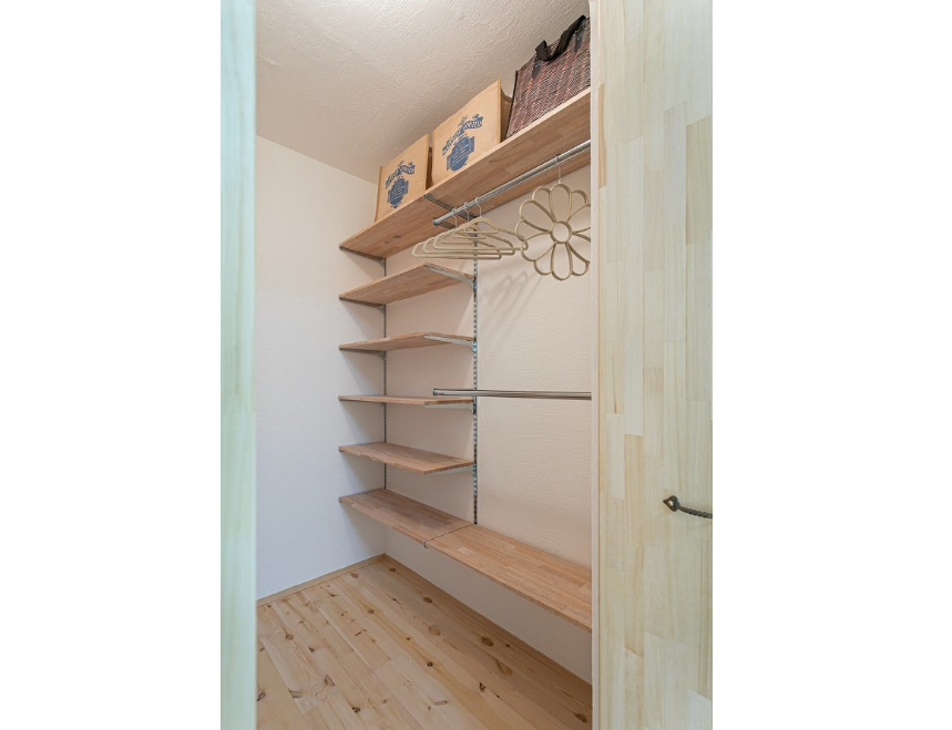 お部屋にもクローゼットを設けていますが、こちらは家族のものをまとめて置けるウォークインクローゼット。