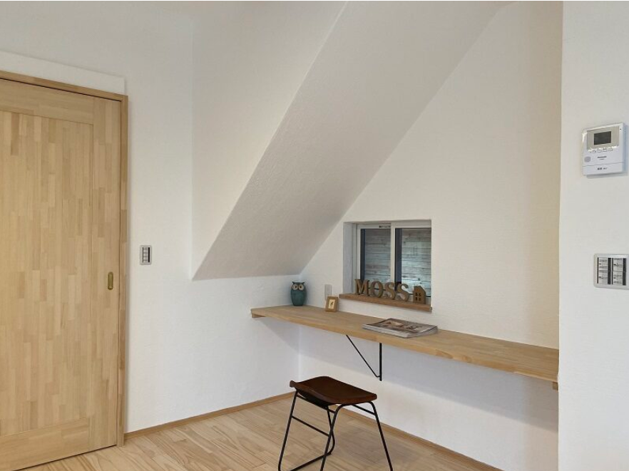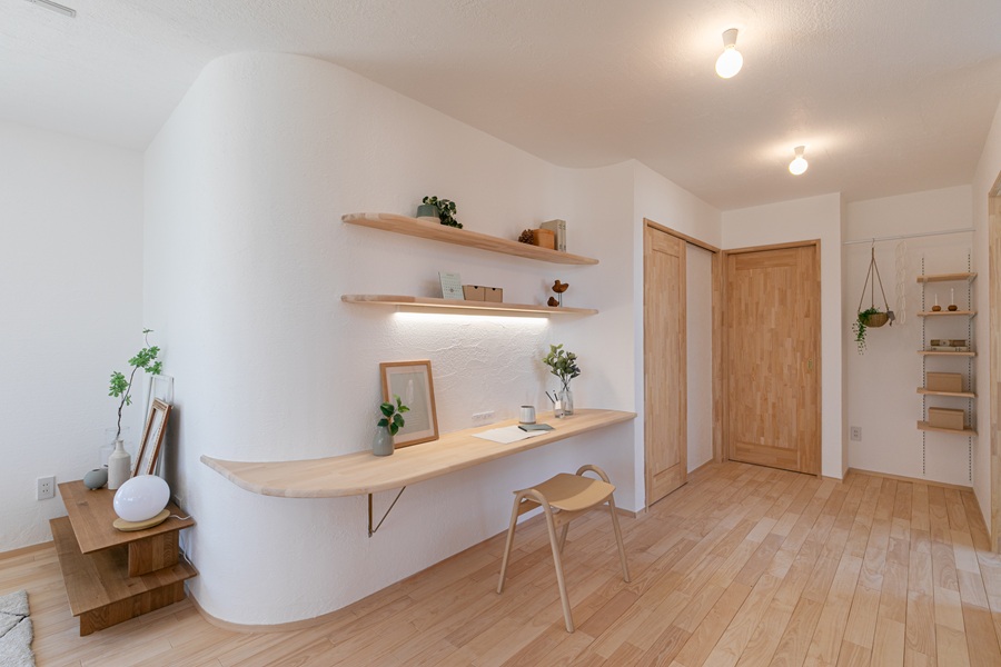 アールのしっくい壁が美しく機能的なスタディーカウンター