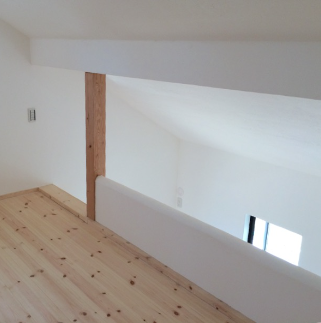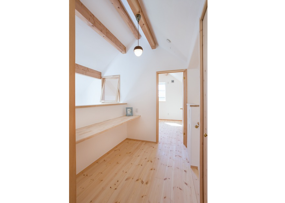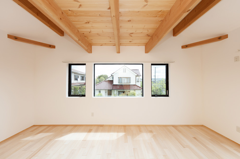 モスハウスでは珍しいまっすぐな天井のお部屋。 勾配天井が当たり前になってしまっていますが、お客様のご希望でフラットな天井にも、もちろんできます。