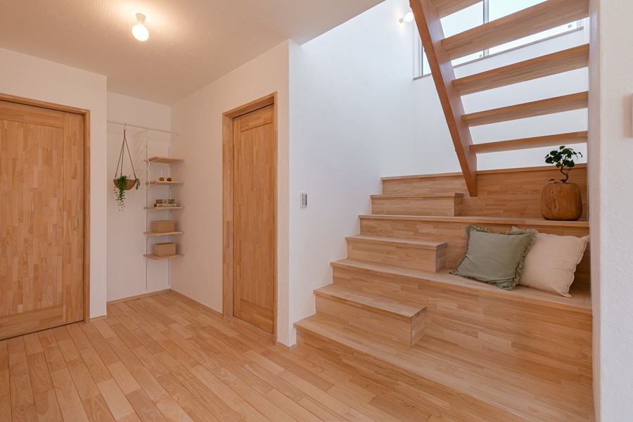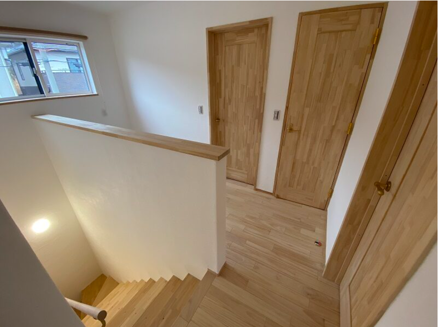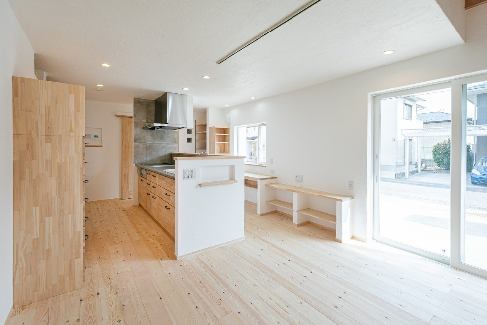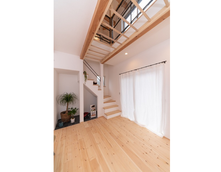 お子様たちが素足で無垢の床の上を元気に駆け回る素敵な家が完成しました。