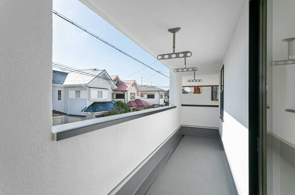 屋根がかかったインナーバルコニー。突然の雨や帰宅が遅くなっても洗濯物の心配をしなくてよいつくりです。