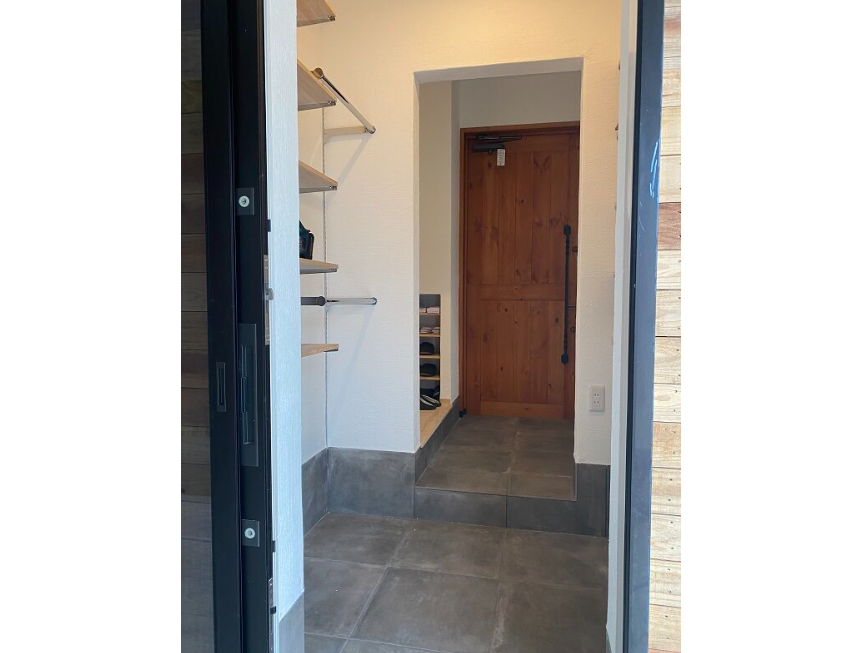 玄関脇に設けた広々土間収納。靴以外にも、土間にしまいたいものって案外たくさんあるんです。