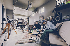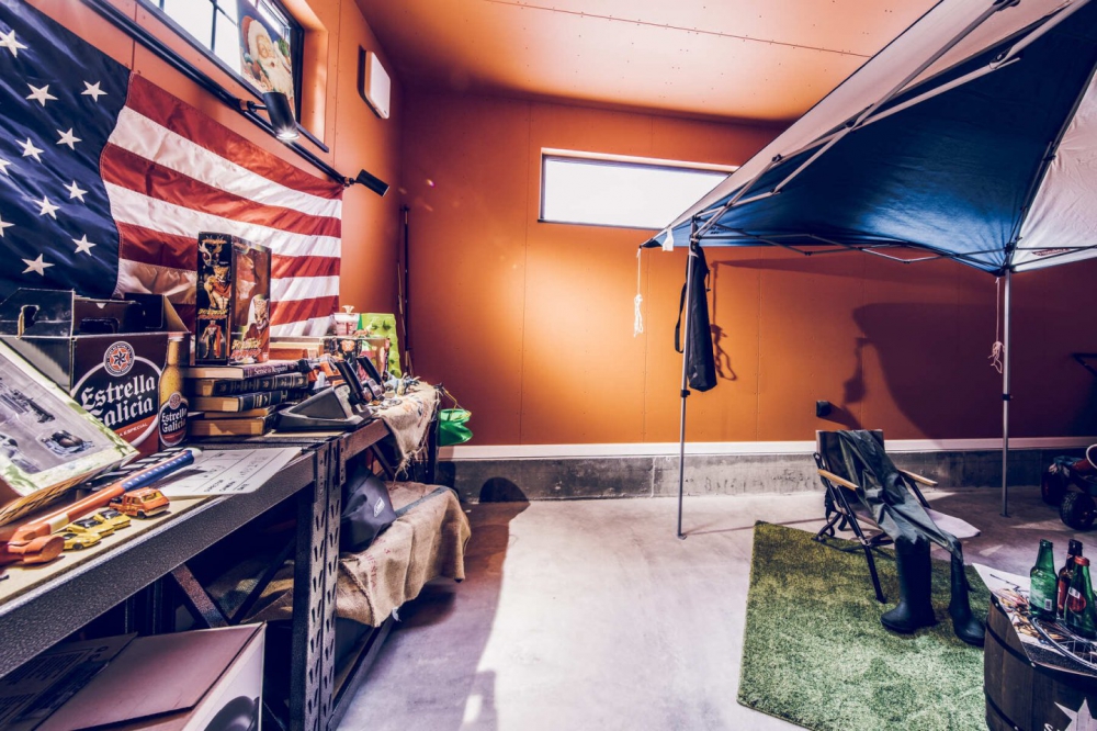 他社も比較しようと、総合展示場にも行ったけど、予算もテイストも合わなかったですね。話を聞いた営業マンも、ゴリ押しな感じで、ちょっと違うかなと。僕のアメカジ工務店への決め手は、やっぱりガレージ。車やバイクをただ置くだけじゃない、遊びのある空間に惹かれました。