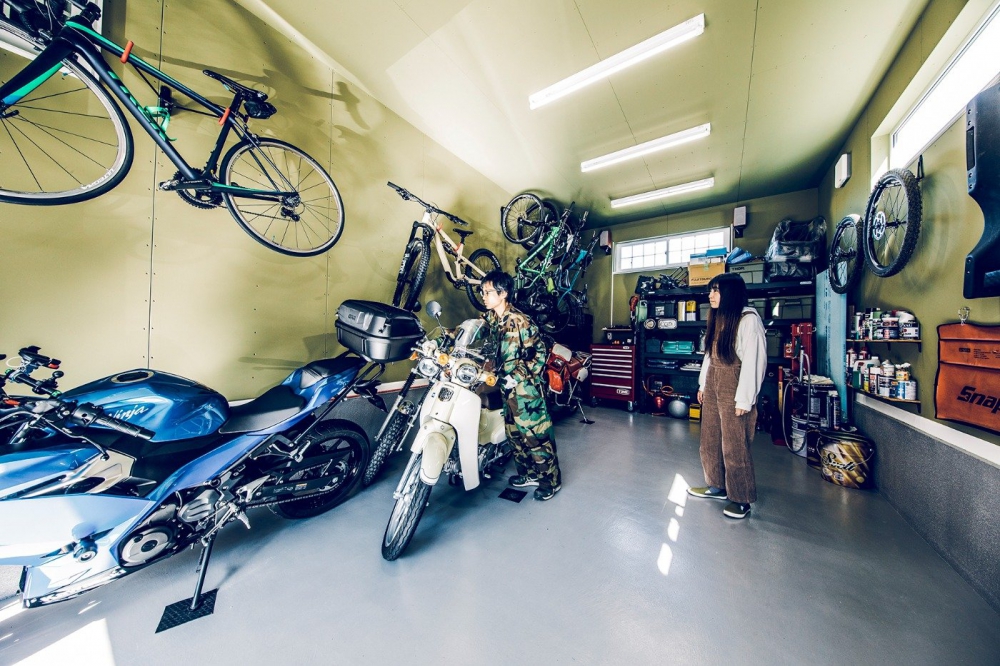 この家に引っ越して、もう大満足です!!好きな時に洗車をしたり、バルコニーでBBQをしたり、DIYをしたり。DIYは音が出るから、周りを気にせずガレージで作業ができて嬉しいです。賃貸暮らしの時は、休みの度に外出していたんですが、今は家にいる時間がかなり増えました。バイク・自転車・車はもともとの趣味だけど、DIYをするようになったのは、家を建ててからです。冬場でも木工作業をするなど、僕はほとんどガレージにこもっています。